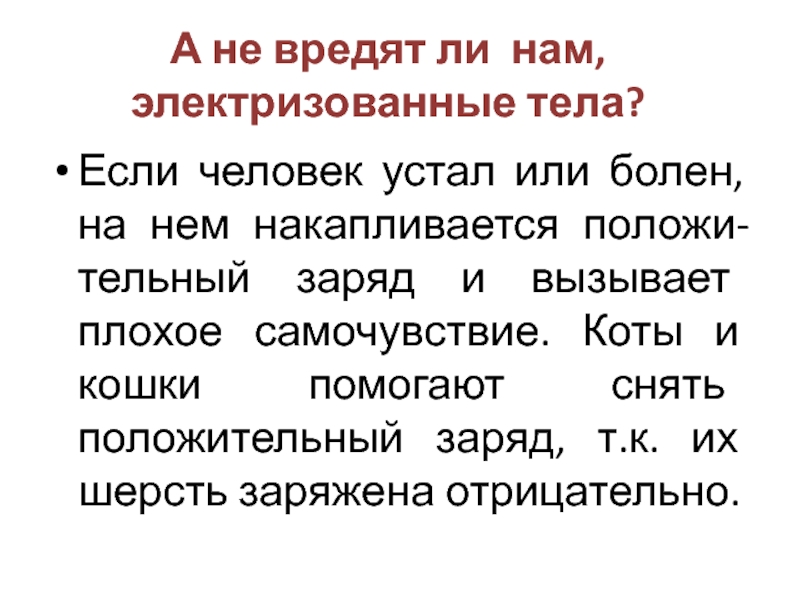 Слайд 16А не вредят ли нам, электризованные тела?