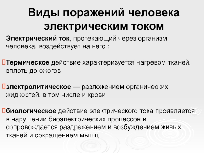 биологическое действие электрического тока проявляется в нарушении биоэлектрических процессов и сопровождается раздражением и возбуждением живых тканей и сокращением мышц