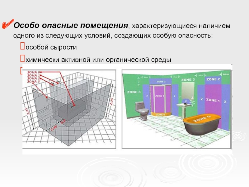 Слайд 7Особо опасные помещения, характеризующиеся наличием одного из следующих условий, создающих