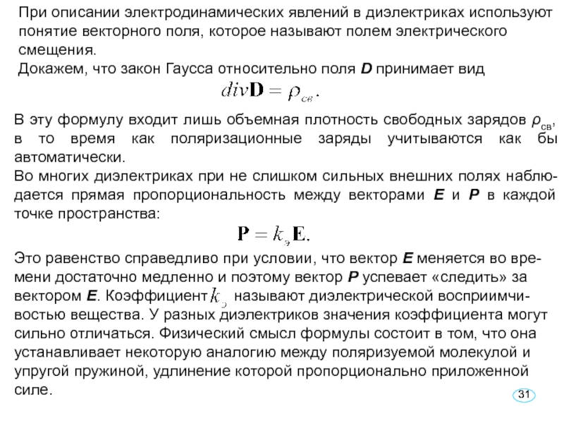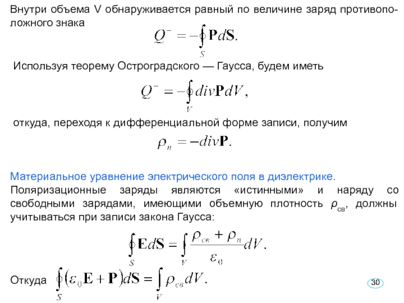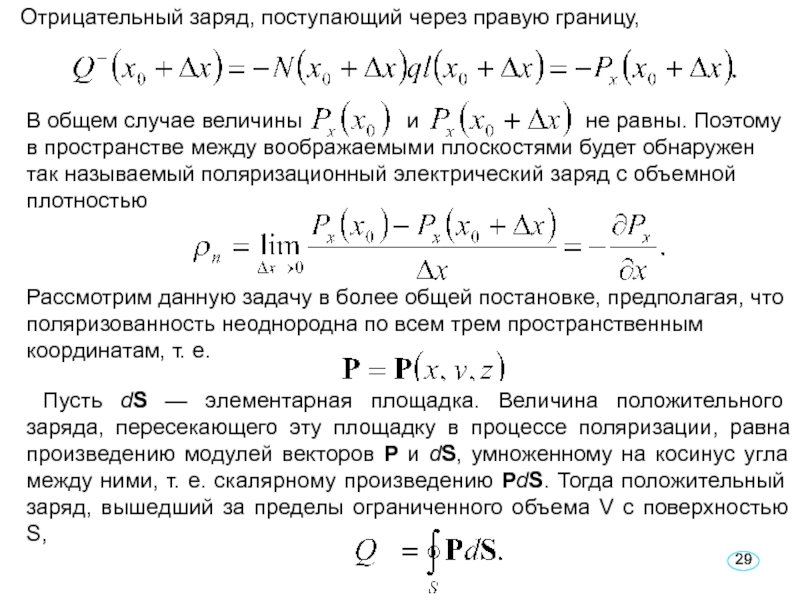 ρ = 0. При поляризации диэлектрика внутрь указанной области через единицу поверхности левой границы входит положительный заряд