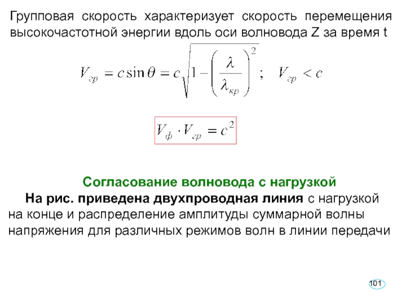 Слайд 101Групповая скорость характеризует скорость перемещения высокочастотной энергии вдоль оси волновода