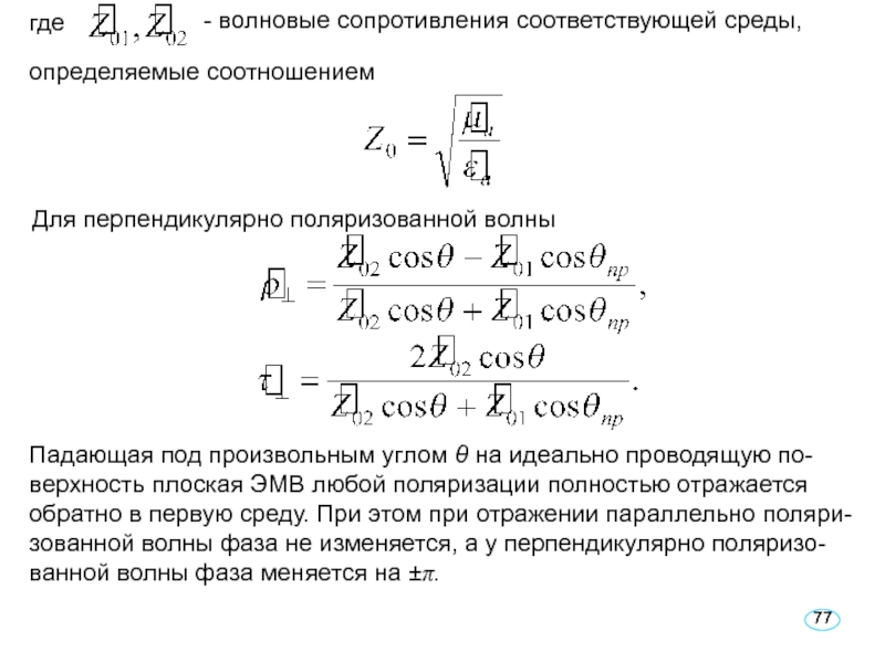 - волновое сопротивление свободного пространства;