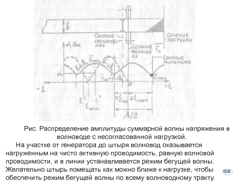 Слайд 109Рис. Распределение амплитуды суммарной волны напряжения в волноводе с несогласованной