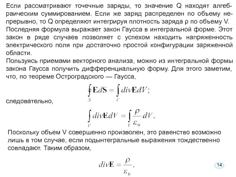 Слайд 14Если рассматривают точечные заряды, то значение Q находят алгеб- раическим
