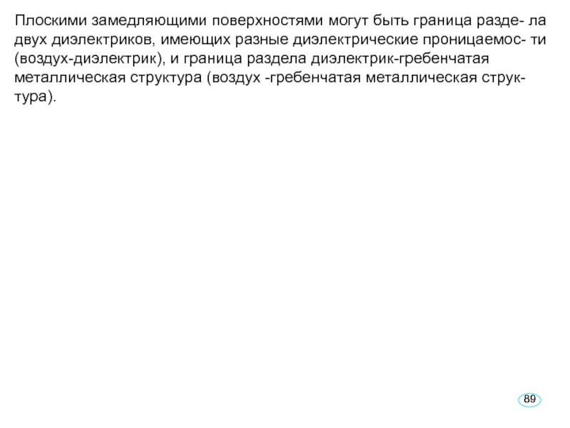 Если электрические токи, протекающие по поверхности металла такой структуры, ориентированы вдоль оси Z, то за счет канавок их путь удлиняется по сравнению с расстоянием, определенным непосредственно вдоль оси Z. При определенных соотношениях между размерами гребенчатой структуры и длиной волны это приводит к замедлению фазовой скорости электромагнитной волны, распространяющейся над плоскостью S в направлении оси Z.