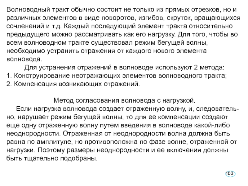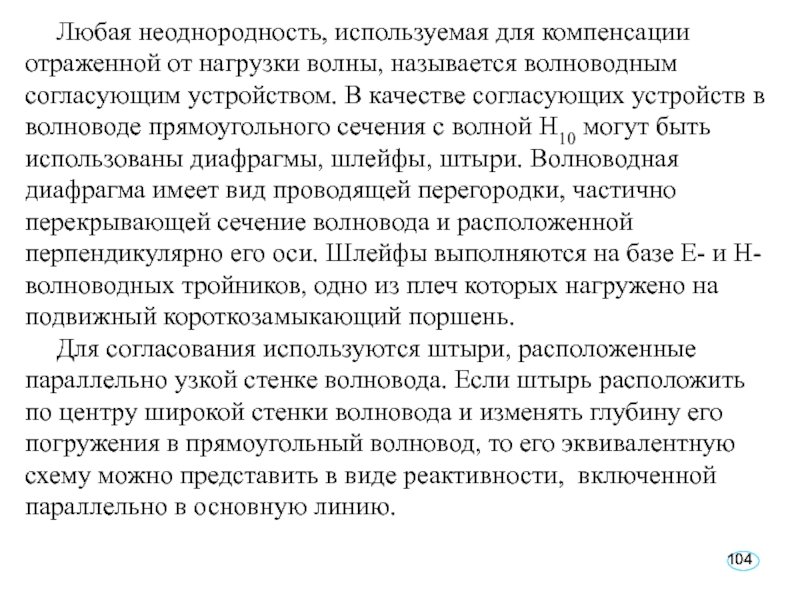Слайд 104Любая неоднородность, используемая для компенсации отраженной от нагрузки волны, называется