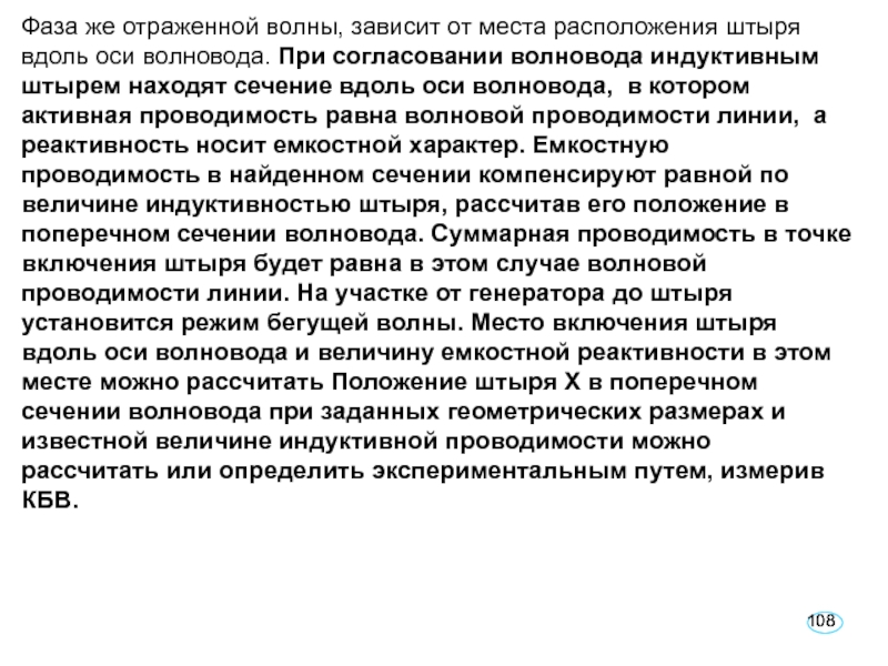 Слайд 108Фаза же отраженной волны, зависит от места расположения штыря вдоль