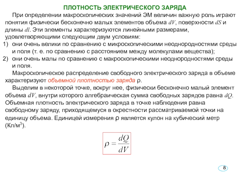 Q определяют интегрируя плотность заряда ρ по объему V.