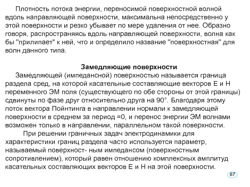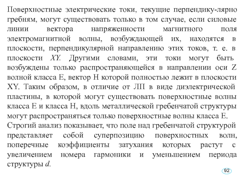 Слайд 92Поверхностные электрические токи, текущие перпендику-лярно гребням, могут существовать только в