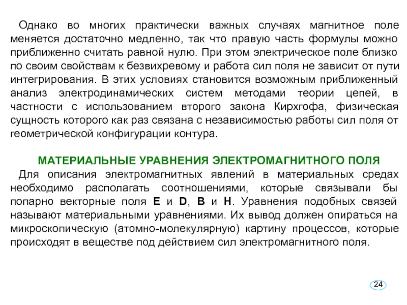 Слайд 24Однако во многих практически важных случаях магнитное поле меняется достаточно
