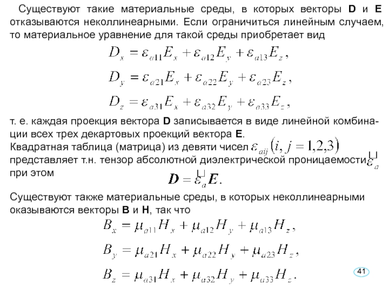 Слайд 41Существуют такие материальные среды, в которых векторы D и Е
