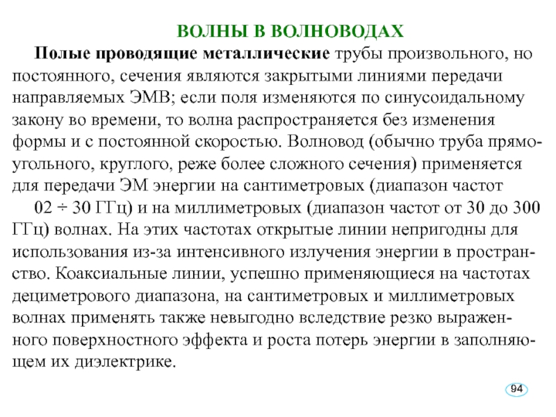 Слайд 94ВОЛНЫ В ВОЛНОВОДАХ
