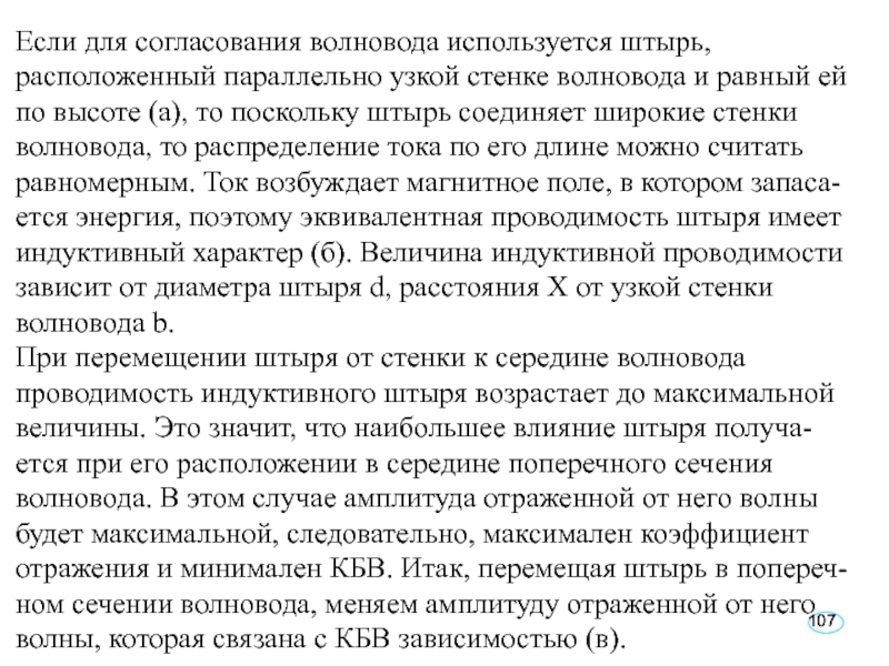 Слайд 106Для согласования волновода реактивным штырем с изменяющей- ся глубиной погружения