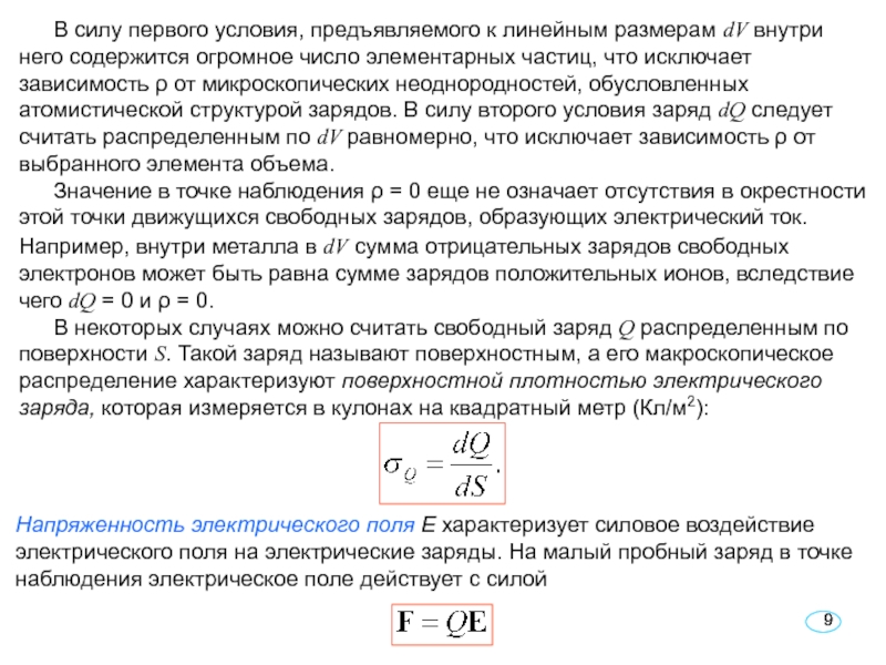 К свободным зарядам относят все заряды, которые могут перемещаться на макроскопические расстояния и образовывать тем самым электрический ток проводимости или переноса (отщепившиеся от атомов электроны в металлах, заряженные частицы в вакууме, ионы в ионизированных газах и электролитах и т.д.). Кроме того, сюда относят заряды, находящиеся на поверхности диэлект- риков и нарушающие их нейтральность, а также заряды ионной решетки твердых веществ, образовавшиеся из-за недостатка в рассматриваемой области вещества ионов определенного знака, что не позволяет разбить решетку на элементарные электрически нейтральные ячейки.