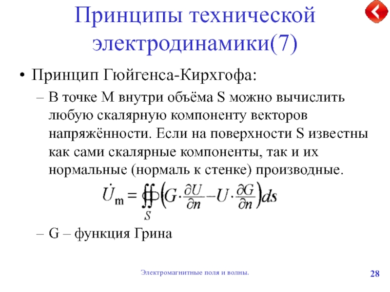 объёма S можно вычислить любую скалярную компоненту векторов напряжённости. Если