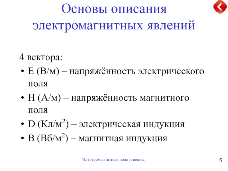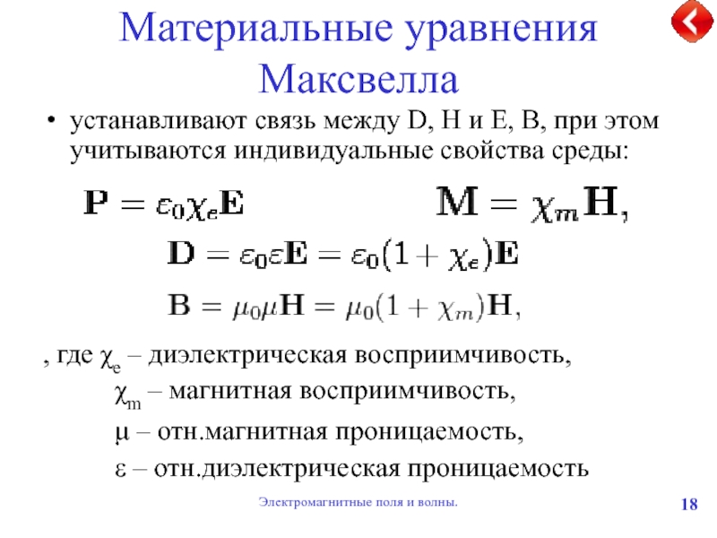 и E, B, при этом учитываются индивидуальные свойства среды: