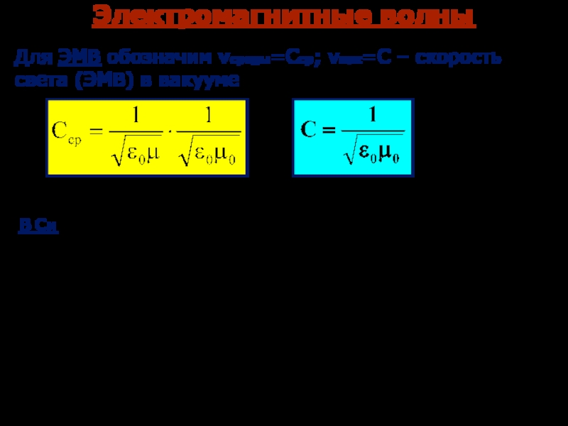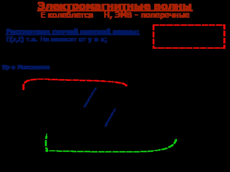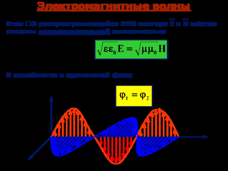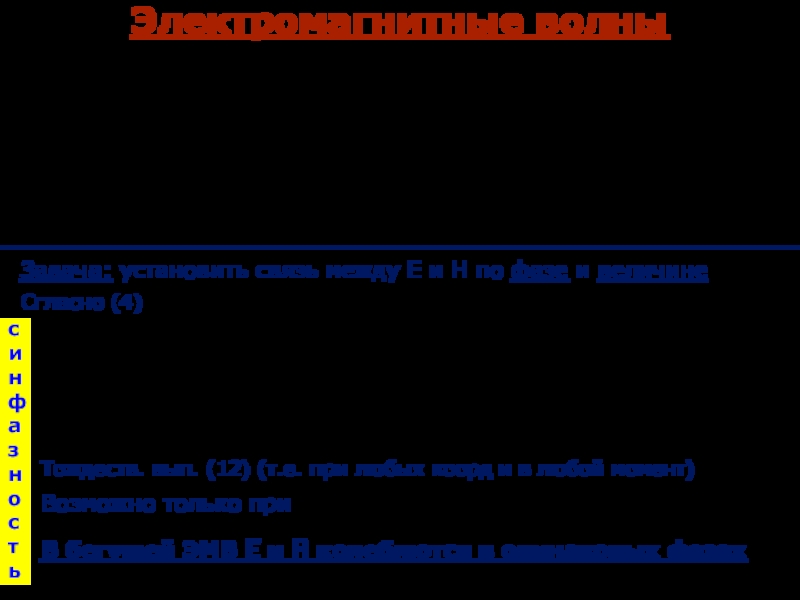 В бегущей ЭМВ Е и Н колеблются в одинаковых фазах