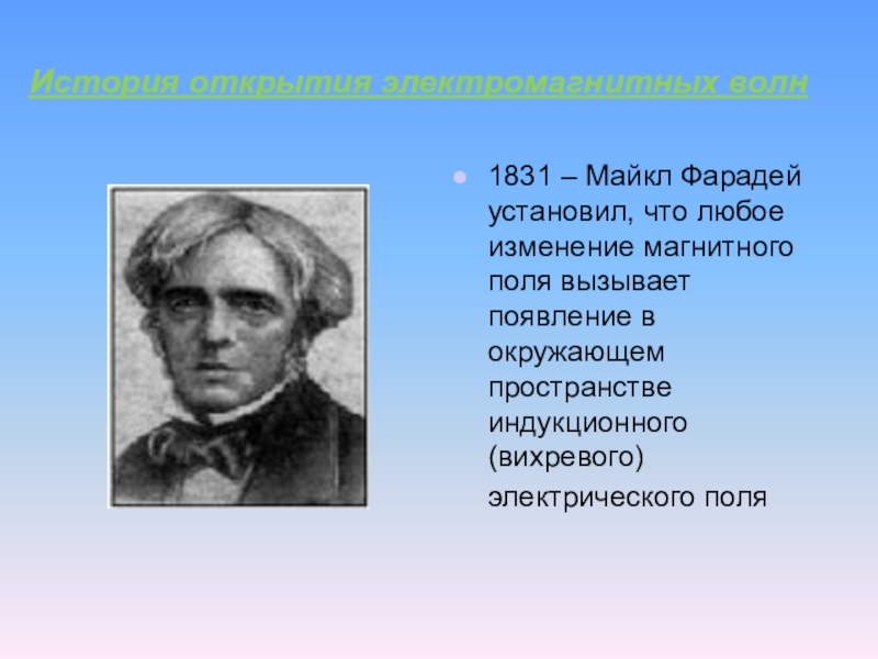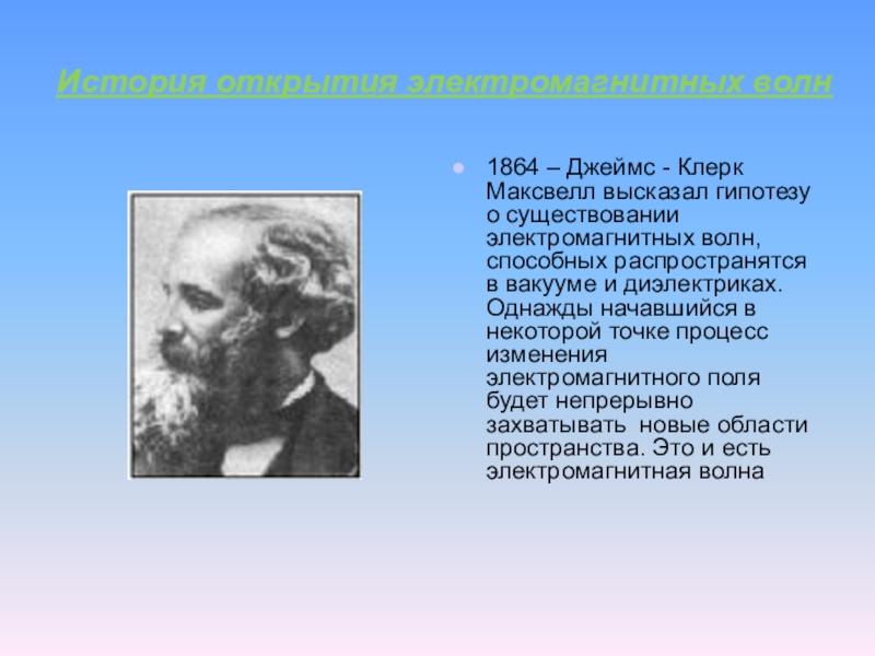 гипотезу о существовании электромагнитных волн, способных распространятся в вакууме и