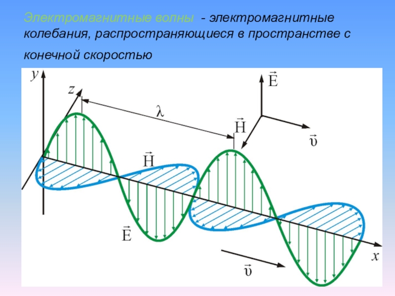 Слайд 2Электромагнитные волны - электромагнитные колебания, распространяющиеся в пространстве с конечной