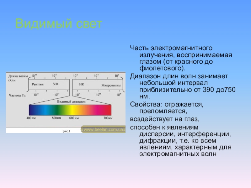 Часть электромагнитного излучения, воспринимаемая глазом (от красного до фиолетового).