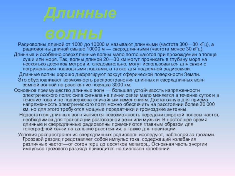 длинными (частота 300—30 кГц), а радиоволны длиной свыше 10000 м