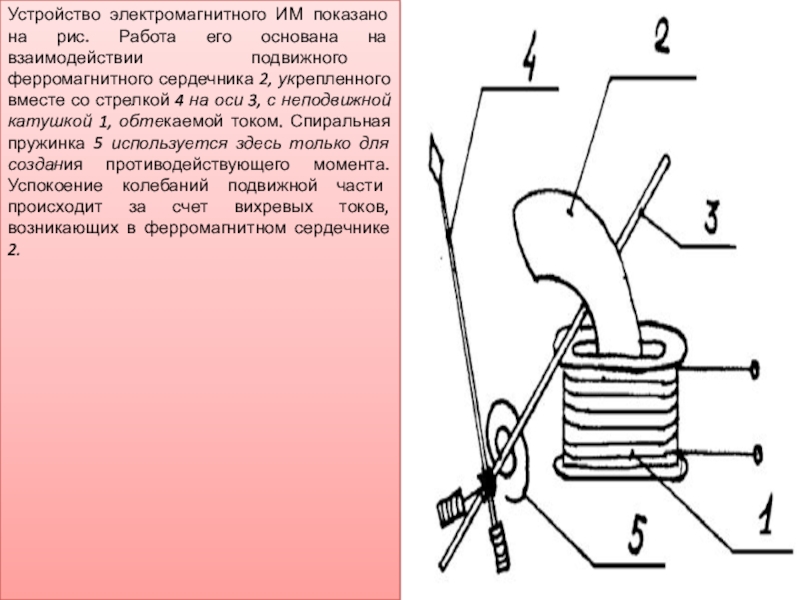 Слайд 6Устройство электромагнитного ИМ показано на рис. Работа его основана на