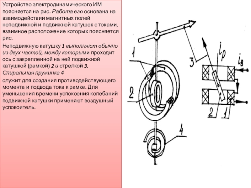 Слайд 8Устройство электродинамического ИМ поясняется на рис. Работа его основана на