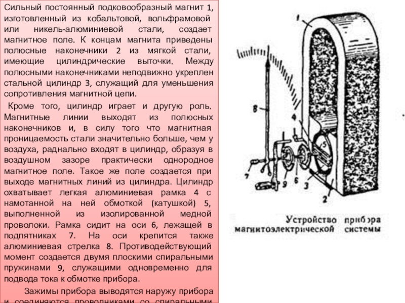 Слайд 4Сильный постоянный подковообразный магнит 1, изготовленный из кобальтовой, вольфрамовой или