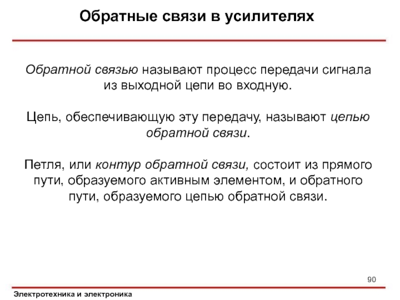 Слайд 90Обратные связи в усилителях