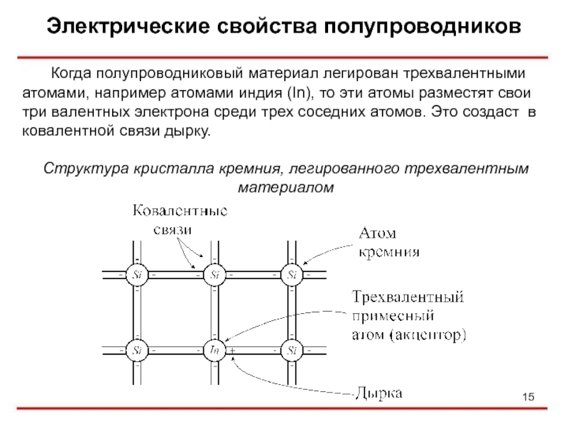 Когда полупроводниковый материал легирован трехвалентными атомами, например атомами