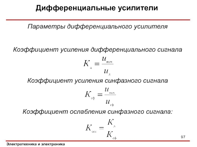 Коэффициенты усиления дифференциального сигнала