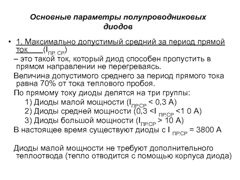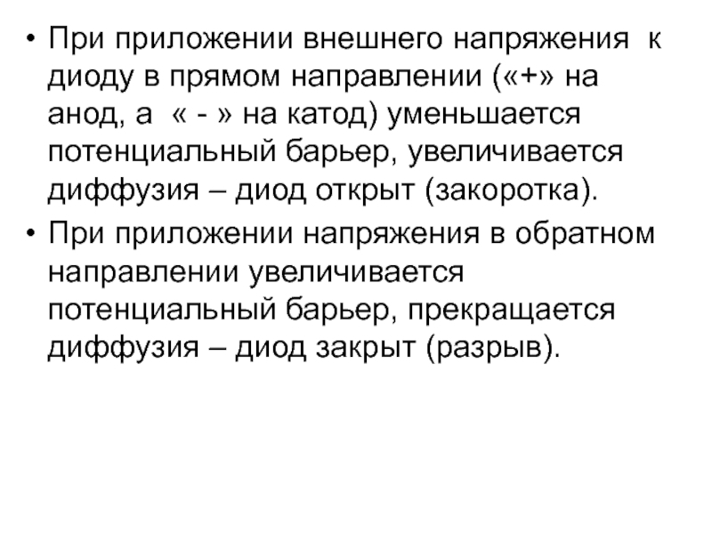 Полупроводниковый диод – двухполюсный прибор, имеющий один p–n-переход.