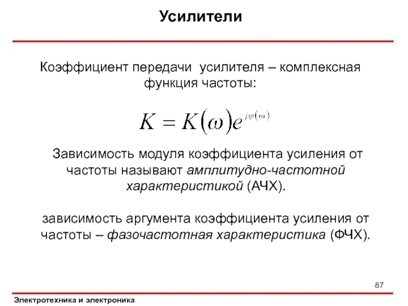 Коэффициент передачи усилителя – комплексная функция частоты: