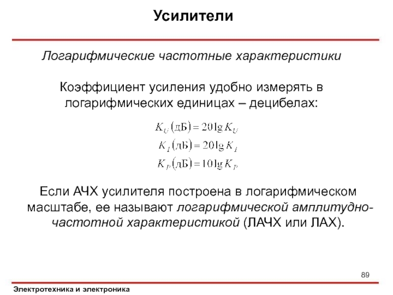 Коэффициент усиления удобно измерять в логарифмических
