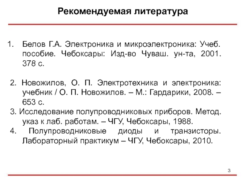 Белов Г.А. Электроника и микроэлектроника: Учеб. пособие. Чебоксары: Изд-во