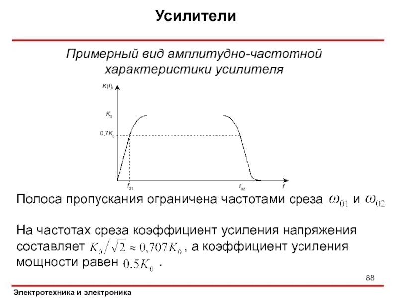 На частотах среза коэффициент усиления