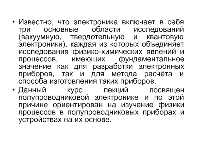 Данный курс лекций посвящен полупроводниковой электронике и по этой причине ориентирован на изучение физики процессов в полупроводниковых приборах и устройствах на их основе.