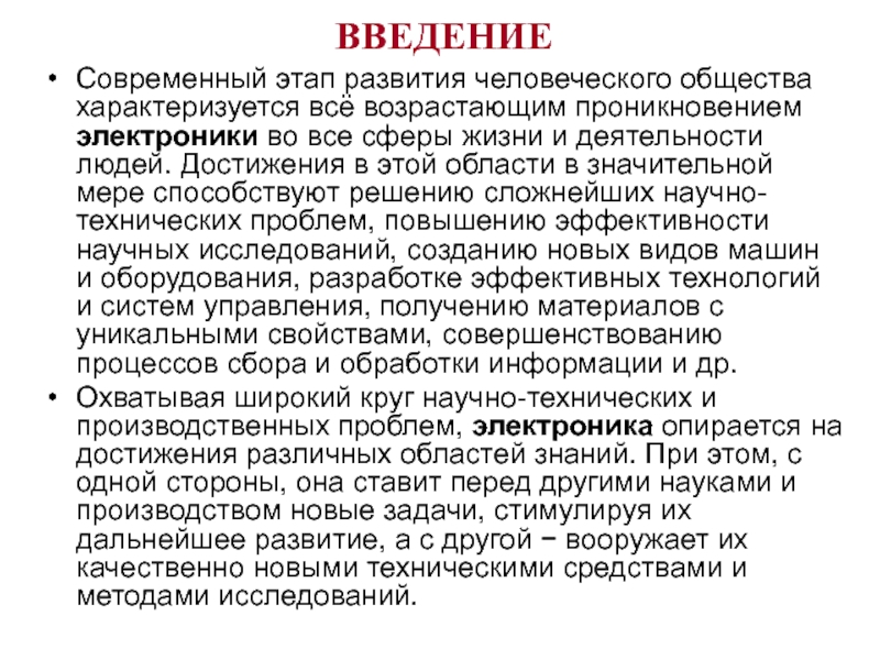 Современный этап развития человеческого общества характеризуется всё возрастающим проникновением электроники