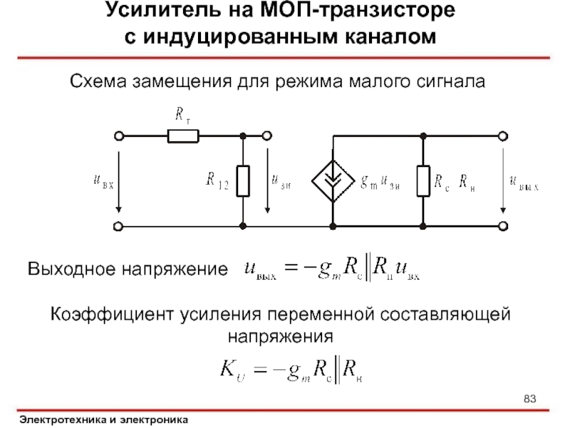 Слайд 83Усилитель на МОП-транзисторе
