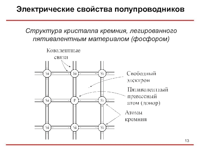Структура кристалла кремния, легированного пятивалентным материалом (фосфором)