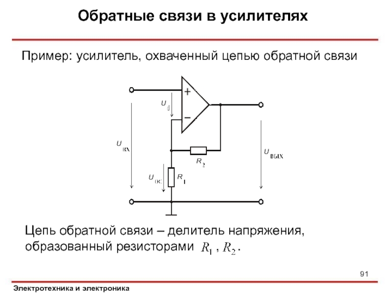 Слайд 91Обратные связи в усилителях