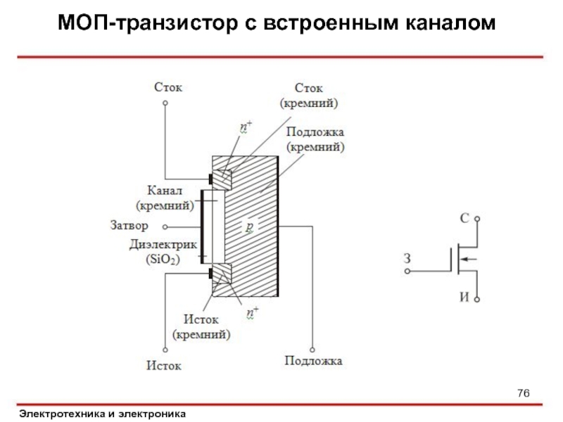Слайд 76МОП-транзистор с встроенным каналом