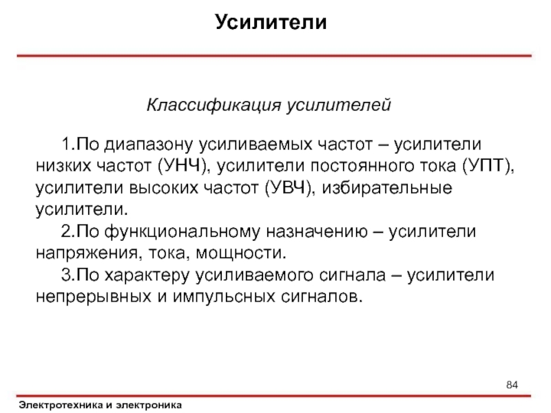 1.По диапазону усиливаемых частот