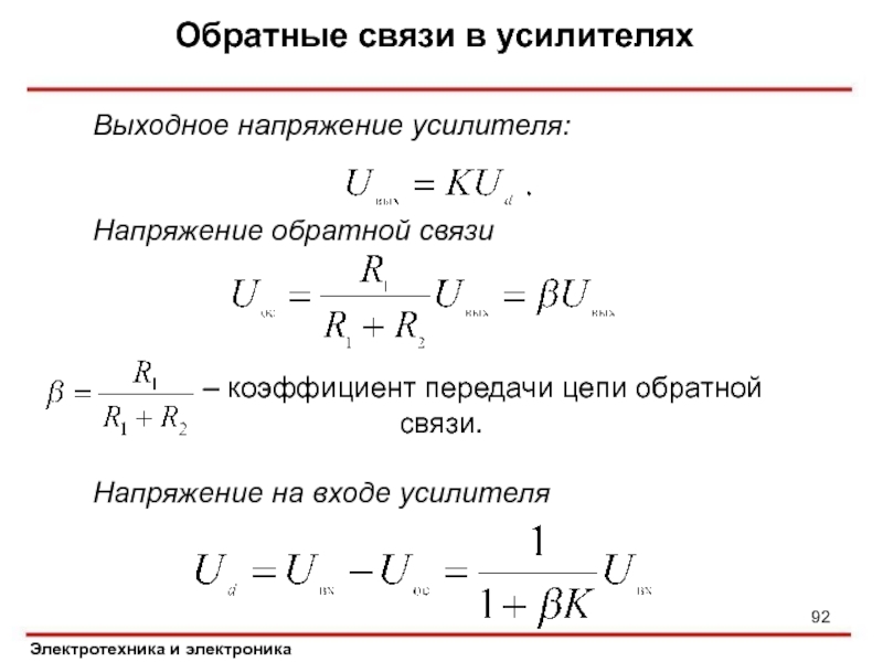 Слайд 92Обратные связи в усилителях