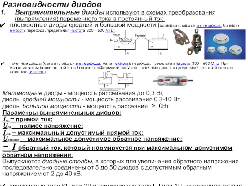 по мощности рассеяния (маломощные (до 0,3 Вт), средней мощности (от 0,3 Вт