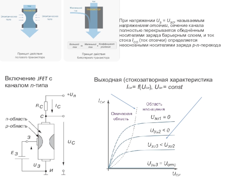 Слайд 58При напряжении UЗ = UЗО, называемым напряжением отсечки, сечение канала