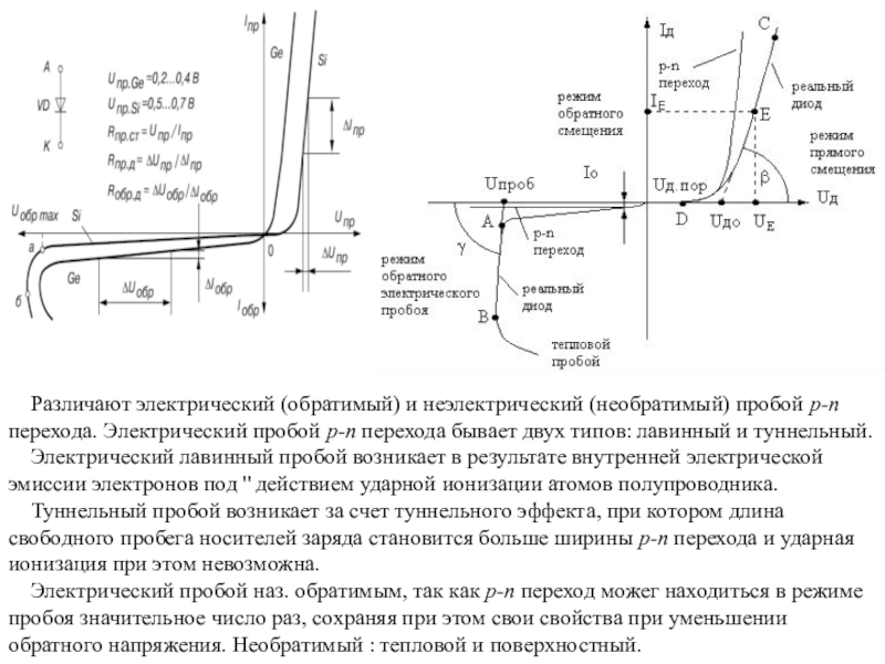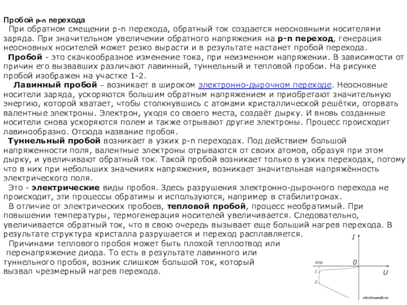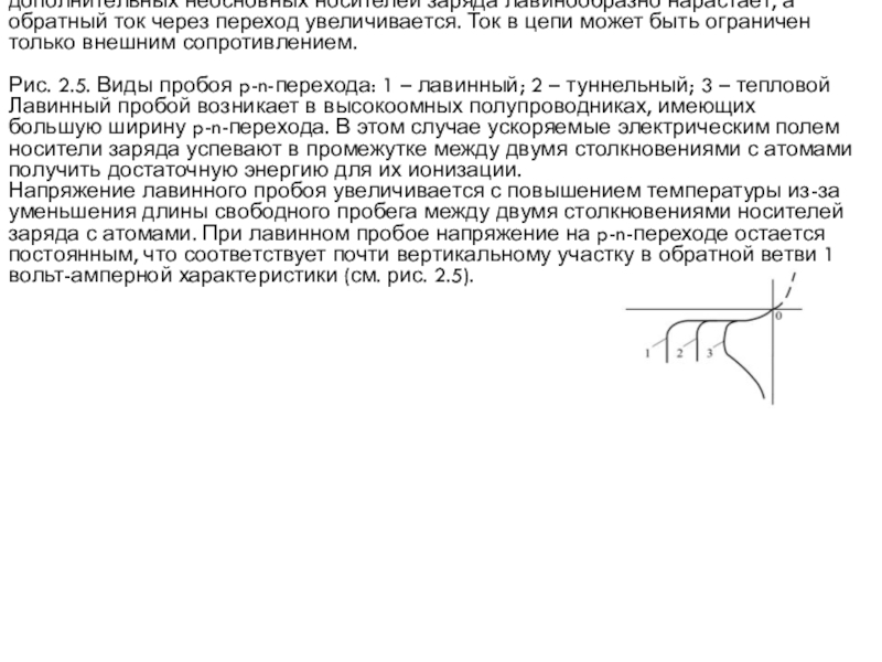 Слайд 76Лавинный пробой – электрический пробой p-n-перехода, вызванный лавинным размножением носителей