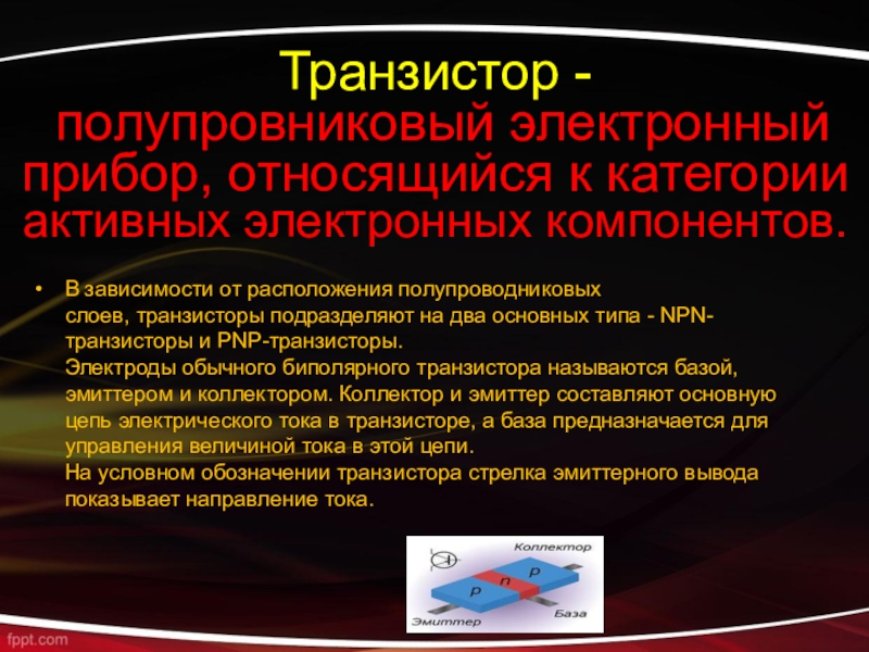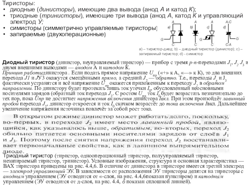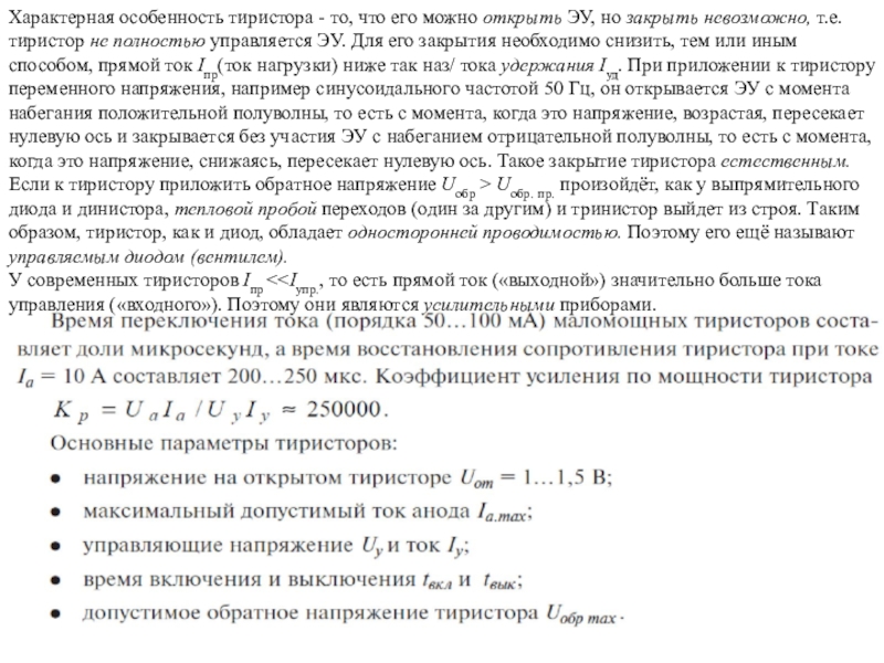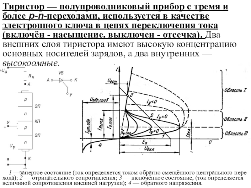транзисторов; тиристор; режимы работы транзистора; интегральные микросхемы