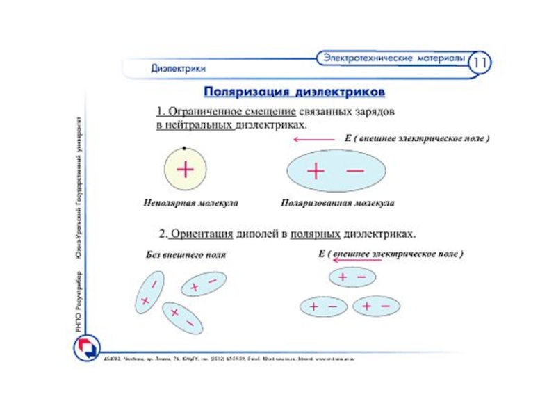 поляризация свойственна диэлектрикам с полярными молекулами, в которых центры положительных и отрицательных зарядов смещены друг относительно друга