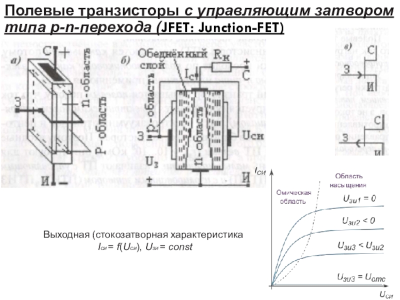 Слайд 57Полевые транзисторы с управляющим затвором типа p-n-перехода (JFET: Junction-FET)